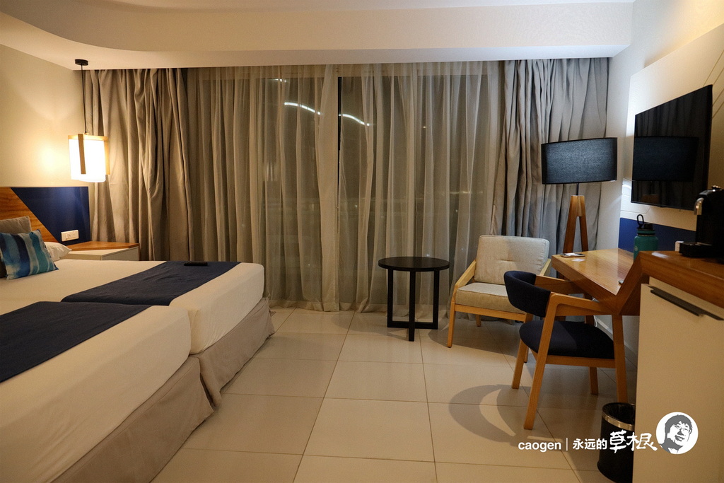 房间看起来不错,两张大床并在一起,无论怎么翻滚都不太容易掉到下面。