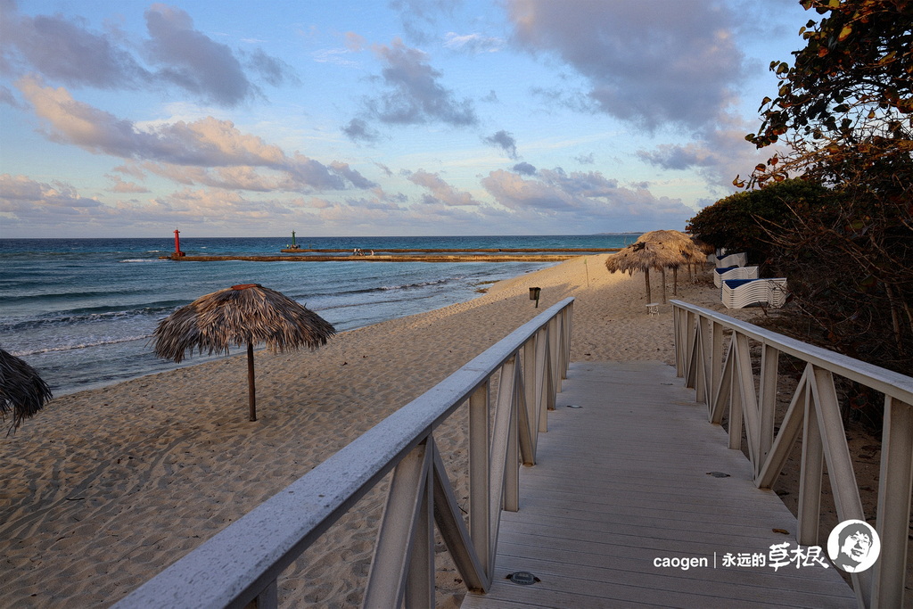 小心翼翼地走上湿滑的大堤,加勒比海海水清澈见底,万恶就在海的那边,160多公里开外的地方。