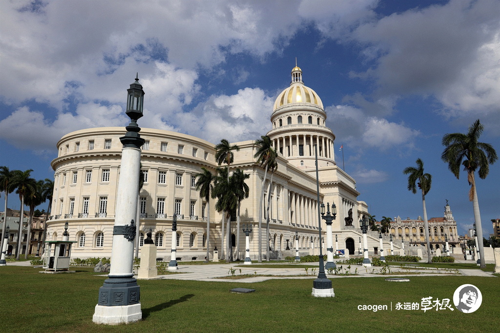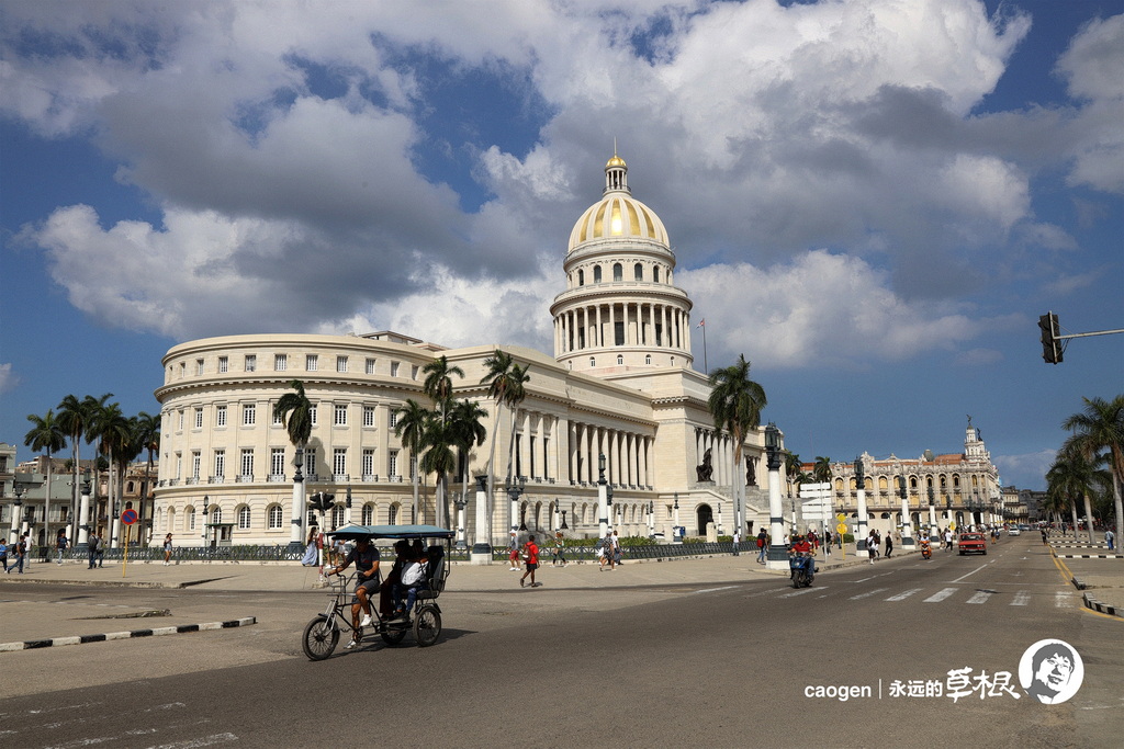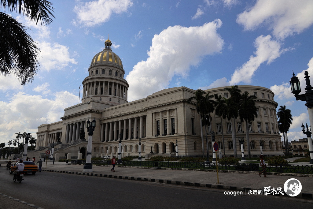 沿着普拉多大道来到古巴的旧国会大厦,造型跟美国的国会大厦相似,但是金色圆顶比美国的国会大厦更多了一分贵气。