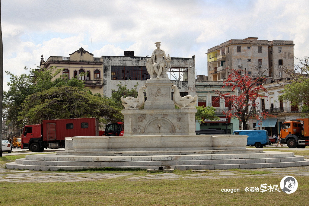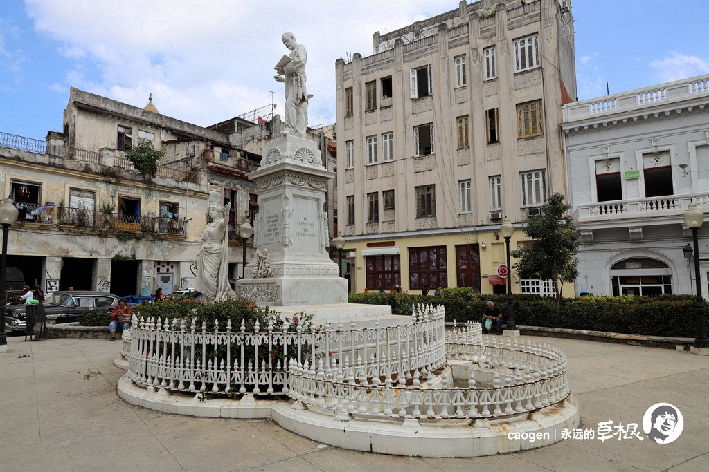 公园中央是一座何塞·马蒂的塑像,在他之前,这里站着的是西班牙女王伊莎贝尔二世 Isabel II。何塞·马蒂相当于中国的孙中山,关于他的事迹,请见草根古巴历史系列《古巴的前世今生》中《何塞·马蒂》那一篇。