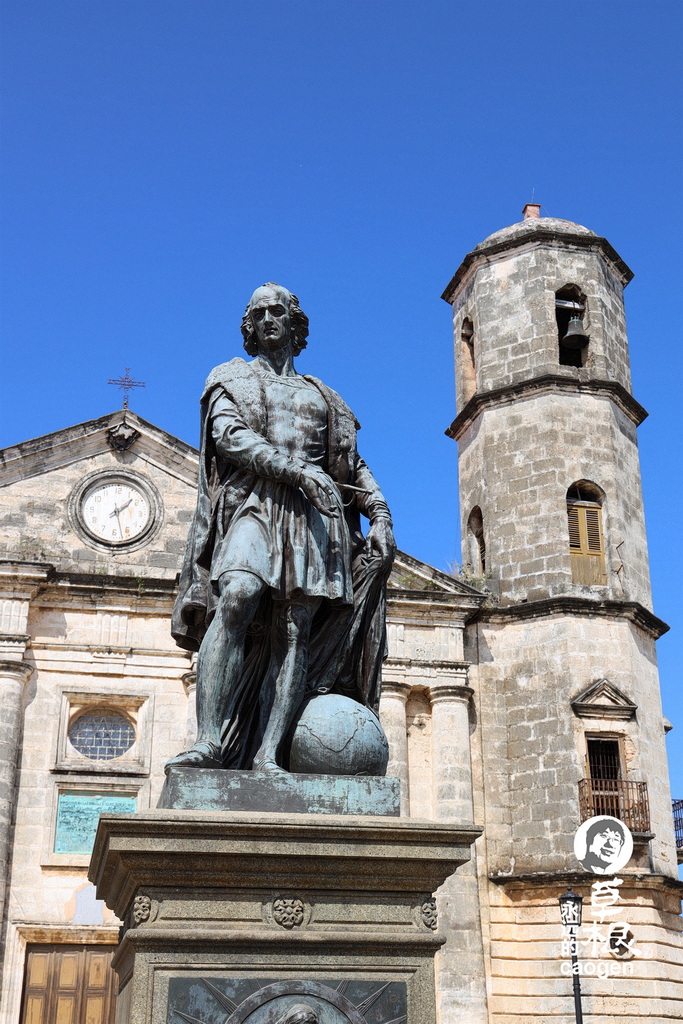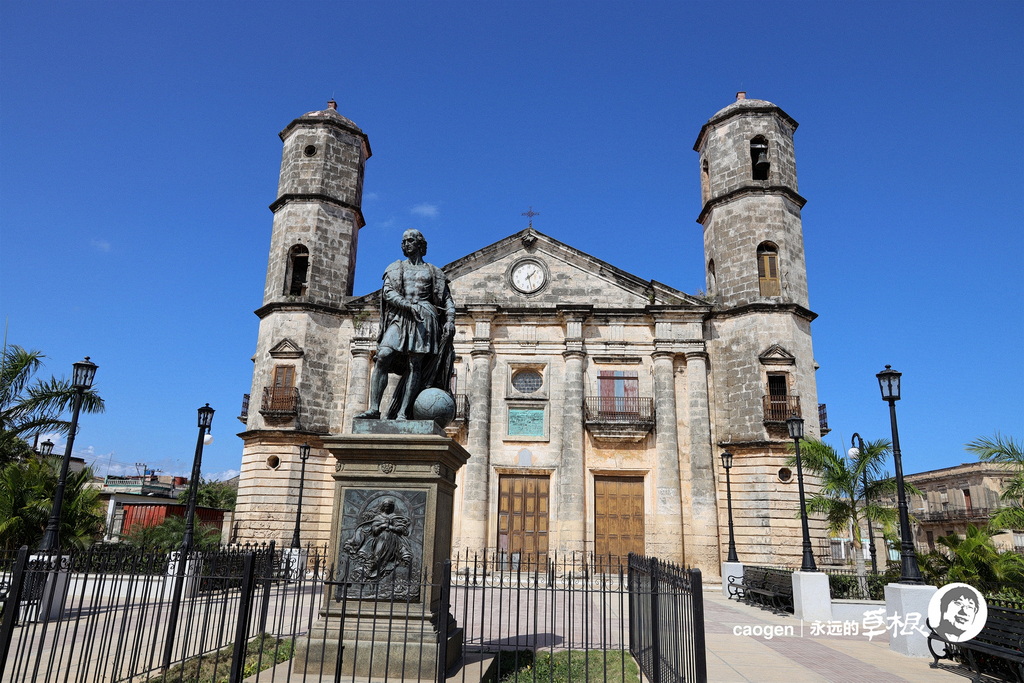 1846年建成的卡德纳斯大教堂 Catedral de la Purísima Concepción de Cárdenas,前面是哥伦布的雕像,