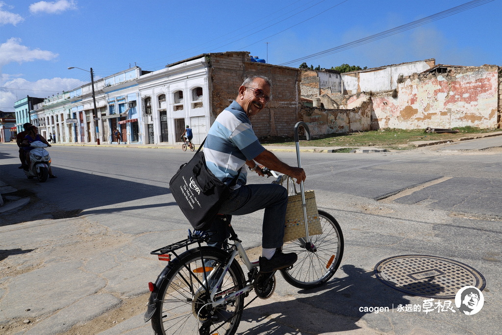 骑自行车的老人在路口停了下来,回头微笑着跟草根打招呼。虽然同是社会主义国家,但是古巴人热情、友好,跟其他社会主义国家的人不大一样。