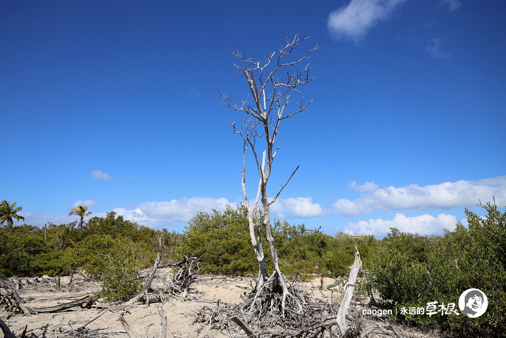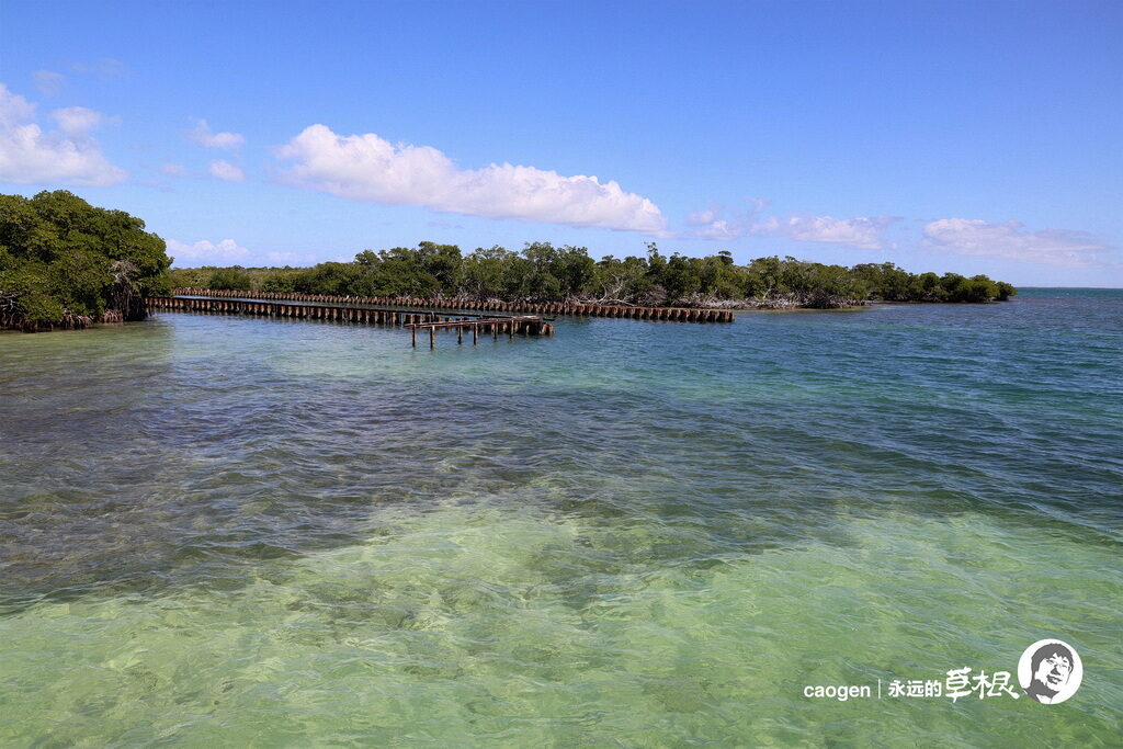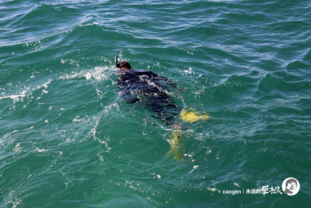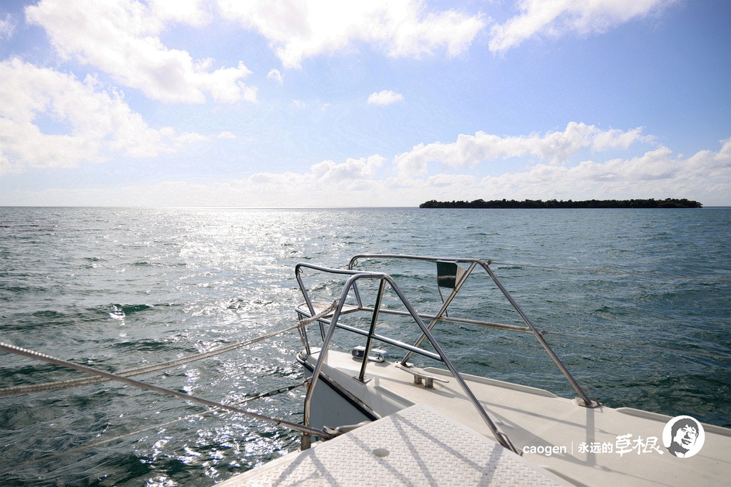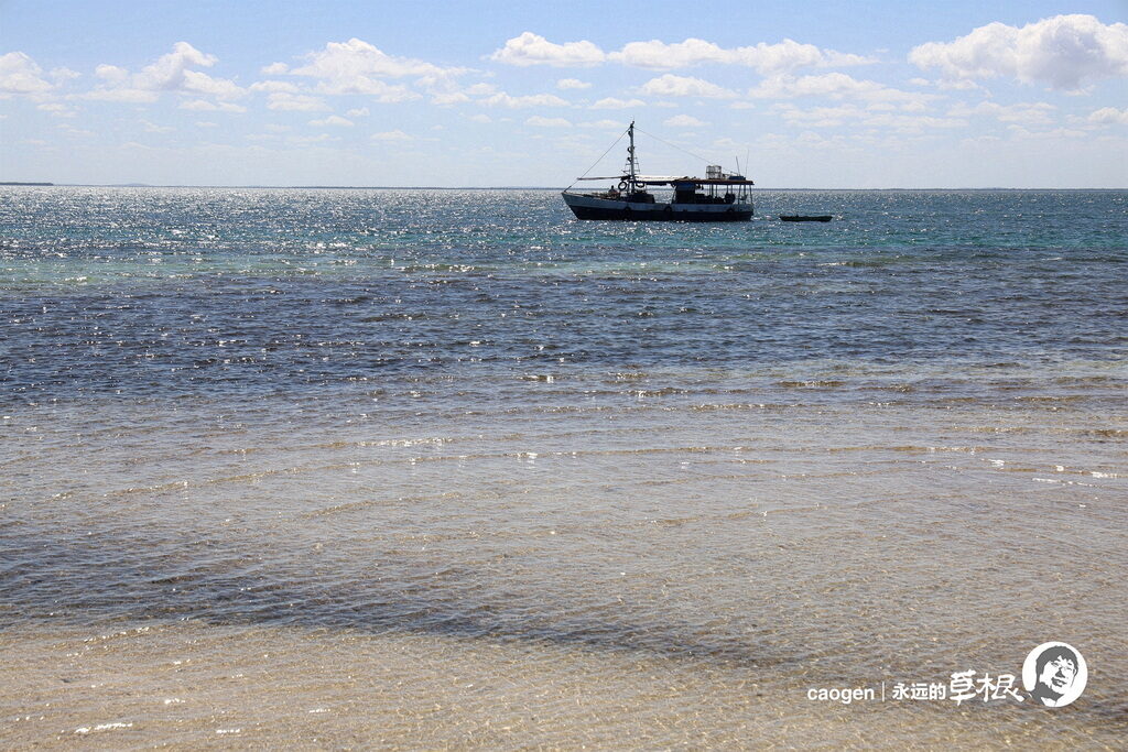 小心地绕过他们,来到水边,尝试着往海里走了走,发现水一直很浅,海里又有大量的海草,根本不适合游泳,于是决定还是回到下船的地方。