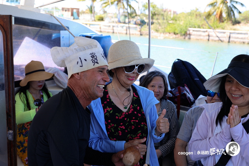 船长给大家准备龙虾餐,大家上岸,看能不能找个地方沐浴一下加勒比海的海水。
